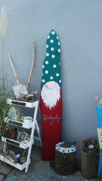 Macht aus einem einfachen und von mir vorbereitetem Brett Euren ganz persönlichen Glückswichtel für Garten, Hof oder Balkon.