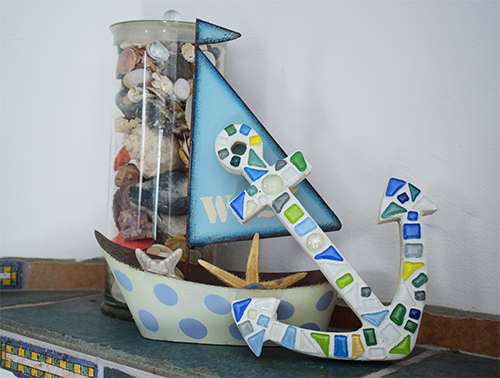 Für alle, die das Meer lieben, sich auf Urlaub einstellen möchten oder einfach ihr Bad verschönern möchten, gibt es den Anker zum Belegen mit Mosaiksteinen.