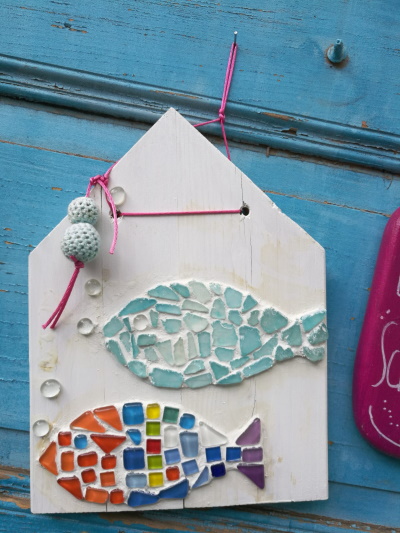 Für echtes Urlaubsfeeling sorgt diese Mosaik-Basteltüte mit den beiden Mosaikfischen.