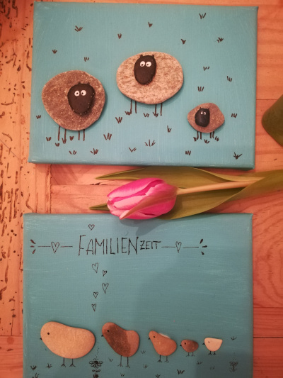 Aus Steinen könnt Ihr ein lustiges Familien- oder Freundebild gestalten.