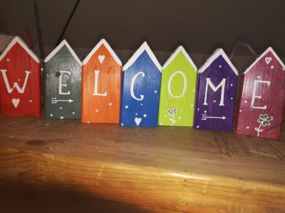 3 Holzschildchen zum Anmalen und Aufhängen.
