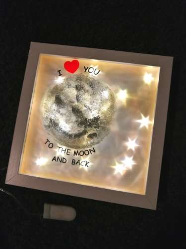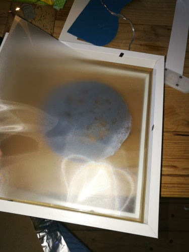 Sternenfolie in Eurem Rahmen auf den getupfelten Mond legen